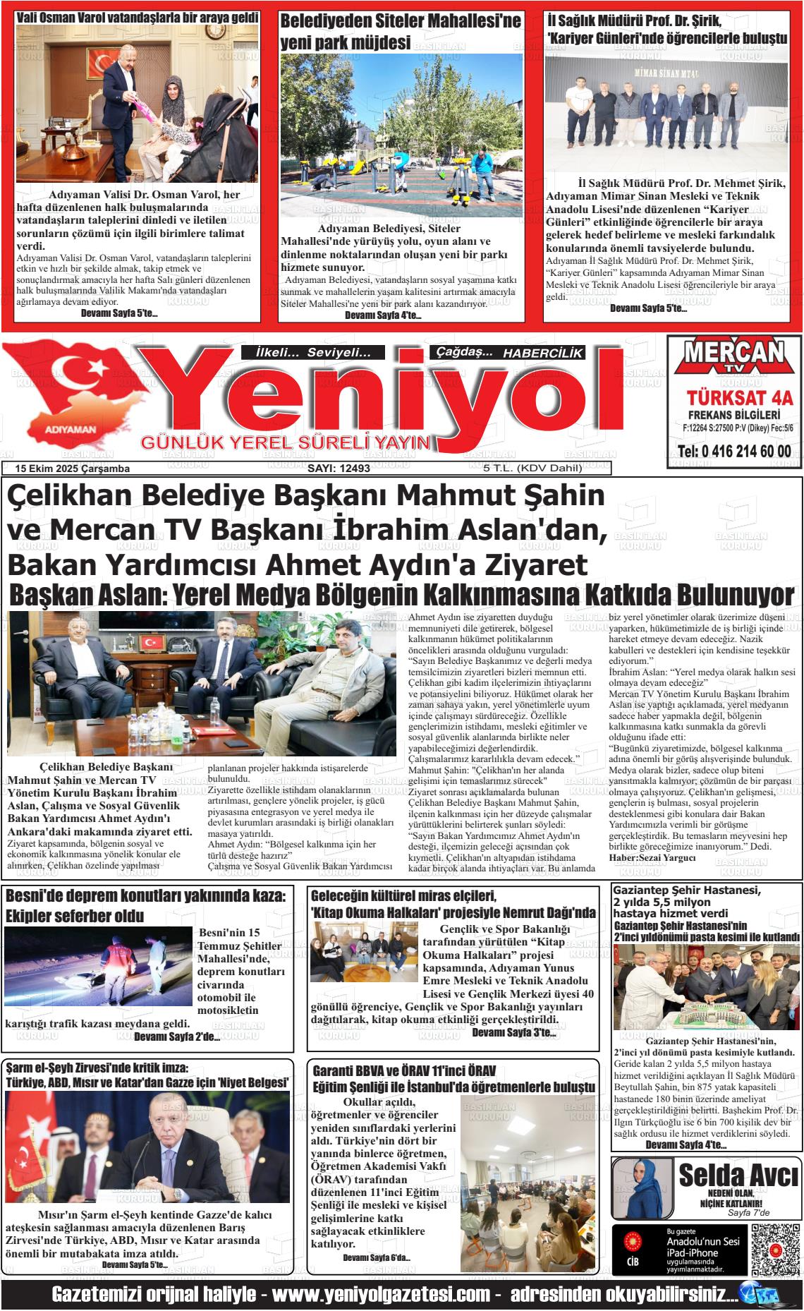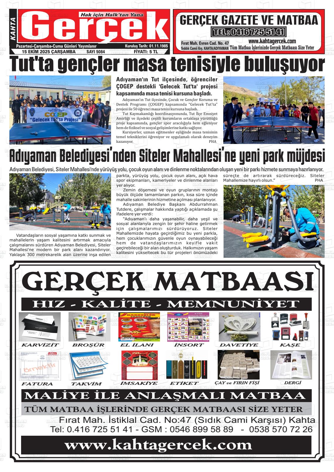 Adıyaman Yerel Gazeteleri 01 Aralık 2025, Pazartesi Günü Manşeti