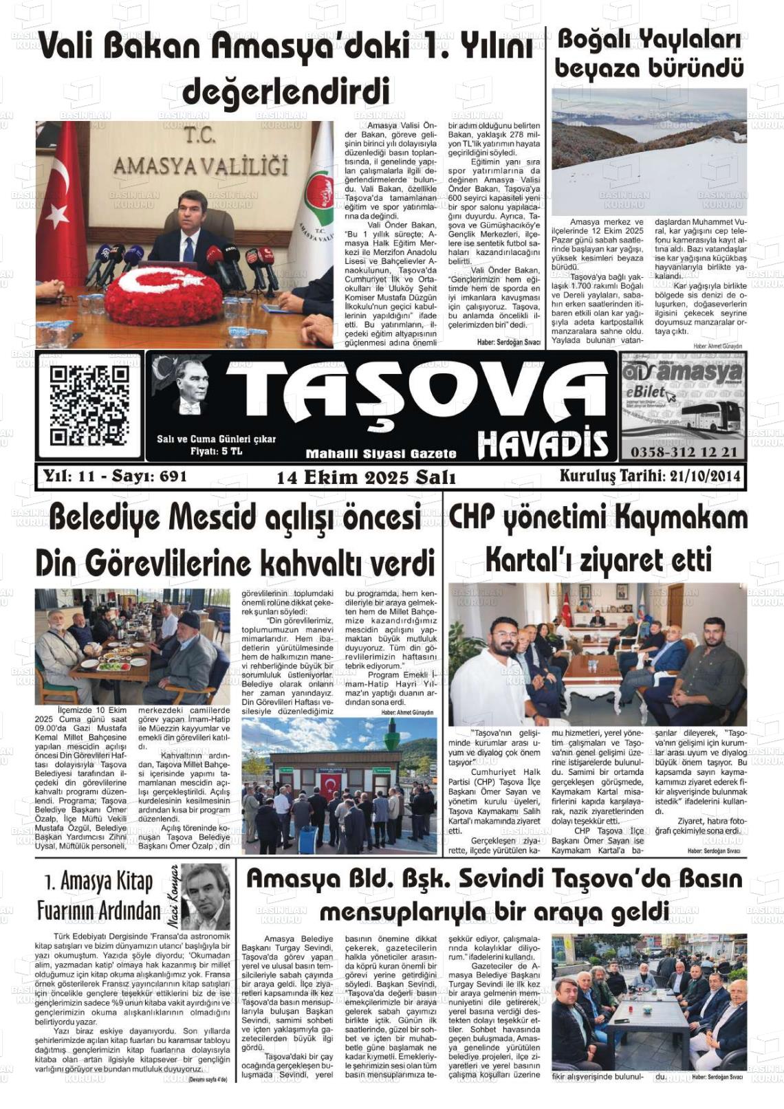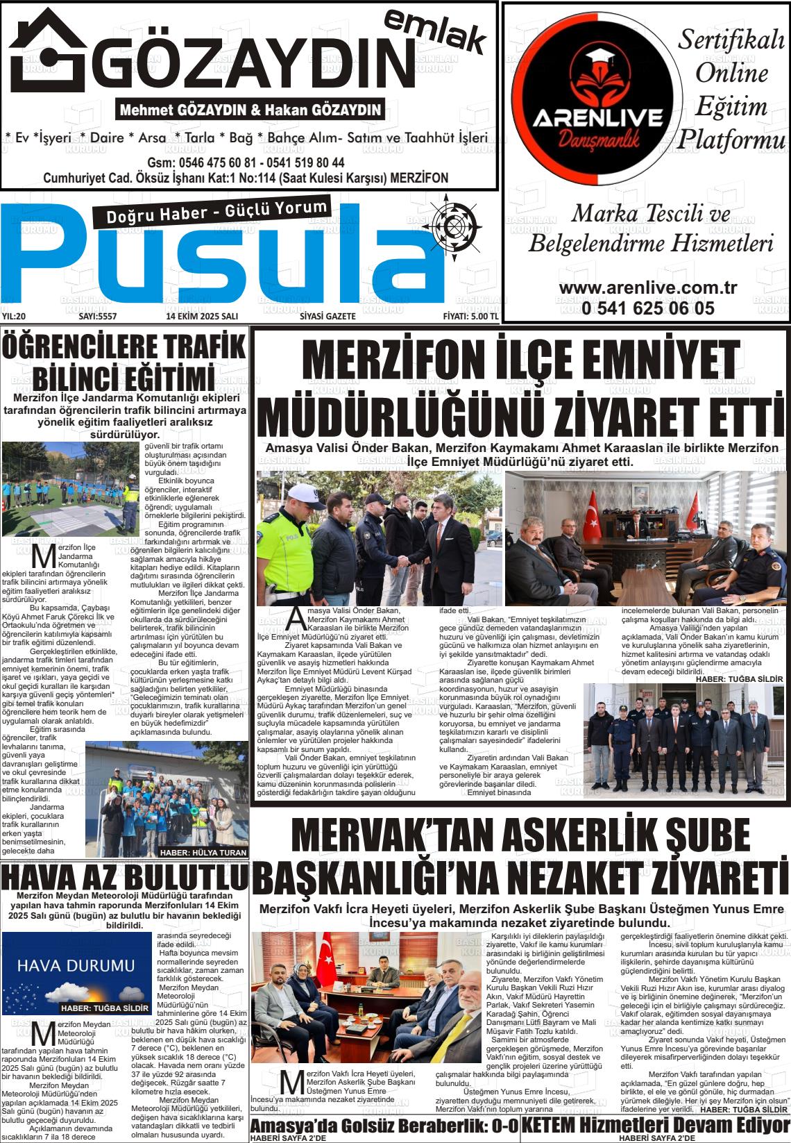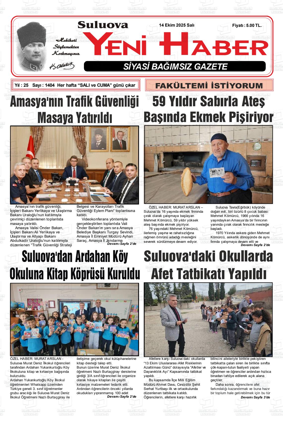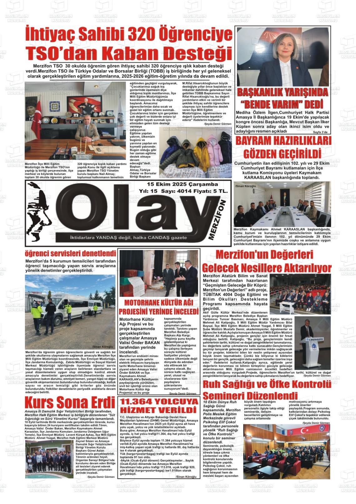 Amasya Yerel Gazeteleri 15 Ekim 2025, Çarşamba Günü Manşeti