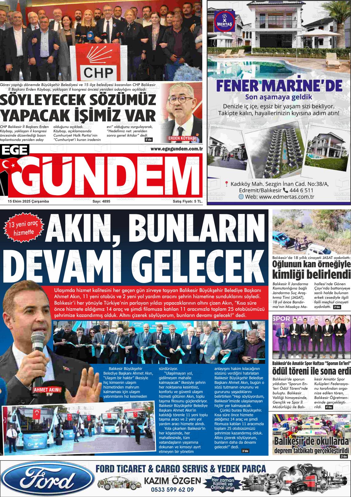 01 Aralık 2025, Pazartesi Günü Manşeti
