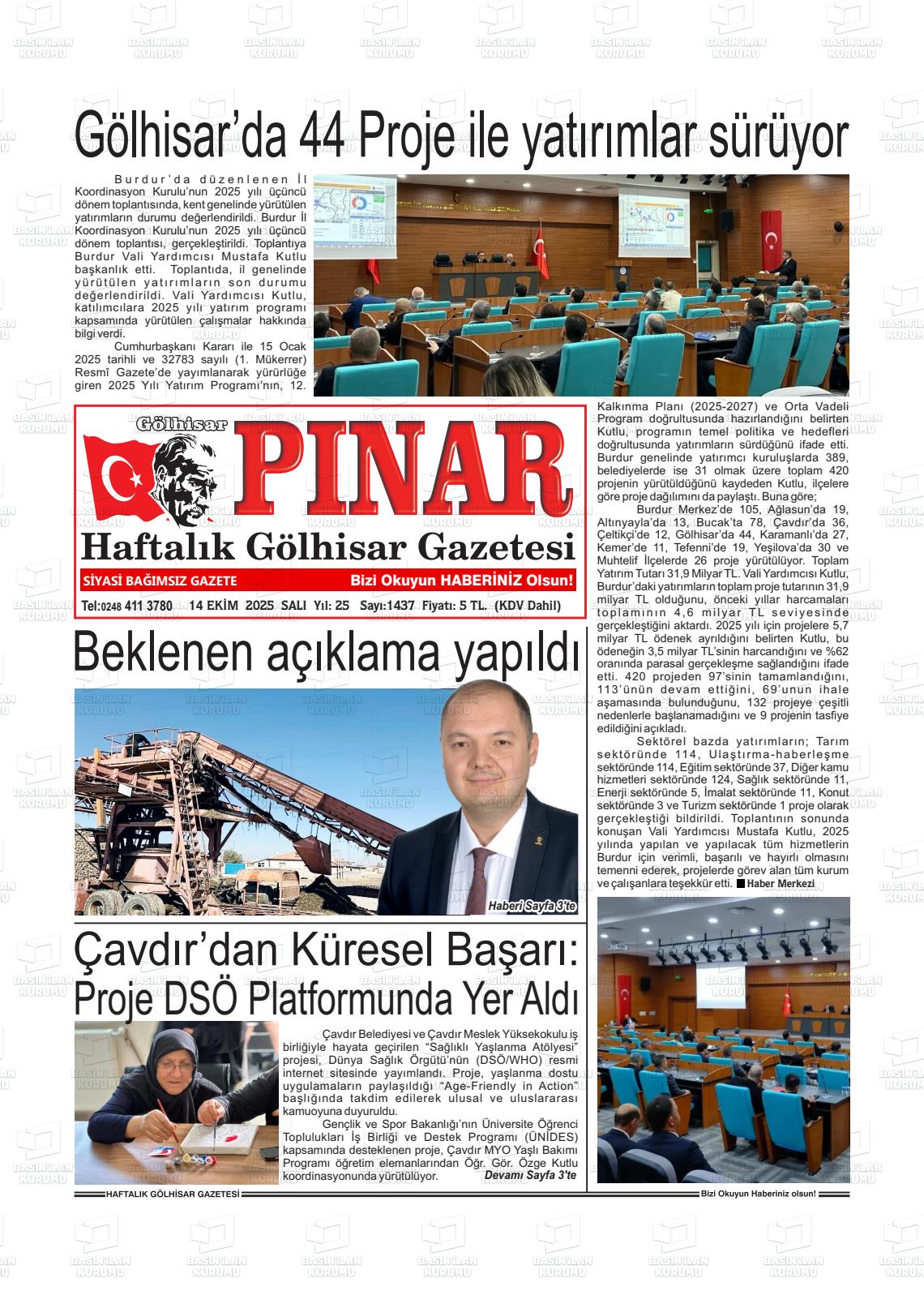 15 Ekim 2025, Çarşamba Günü Manşeti