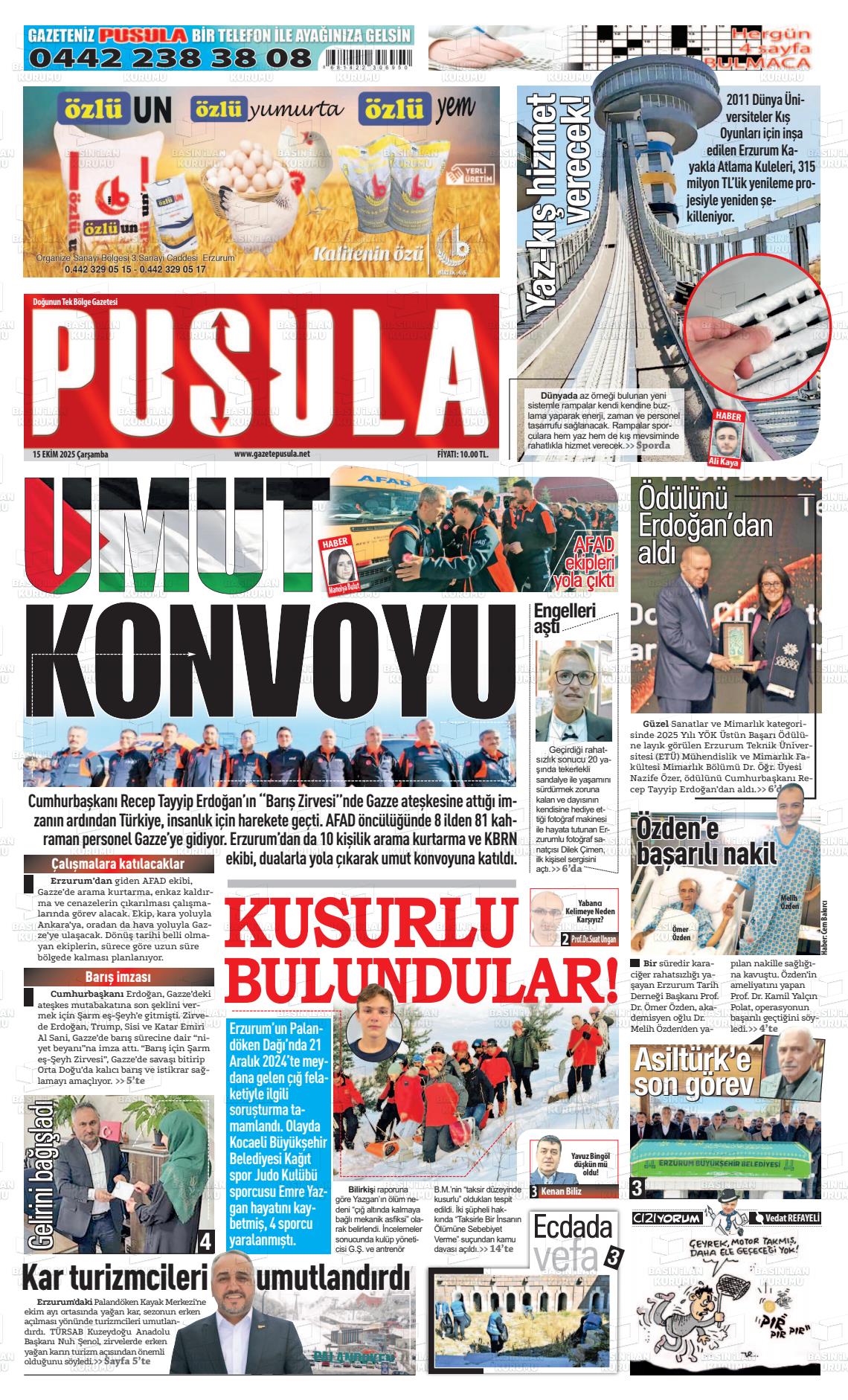 15 Ekim 2025, Çarşamba Günü Manşeti