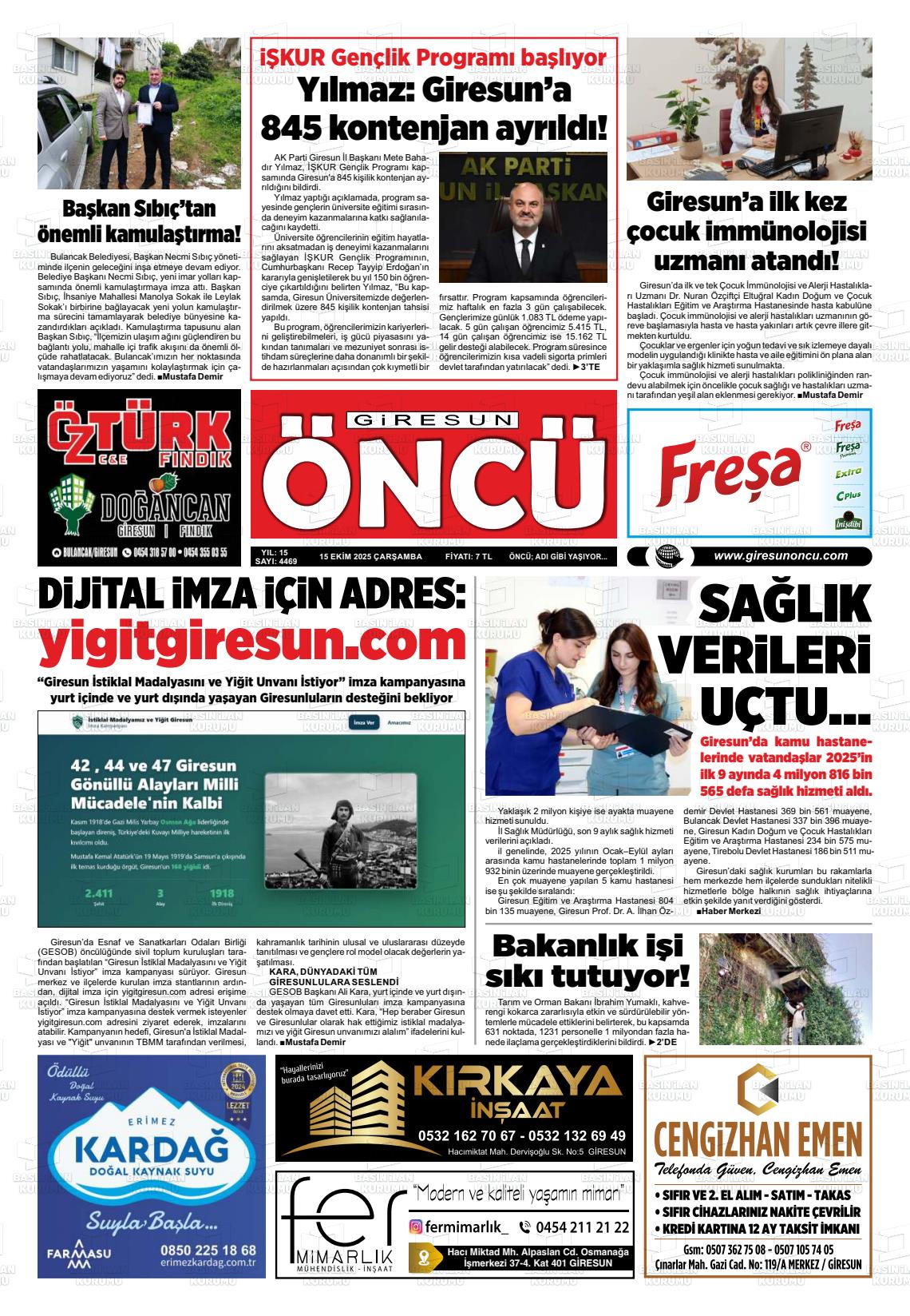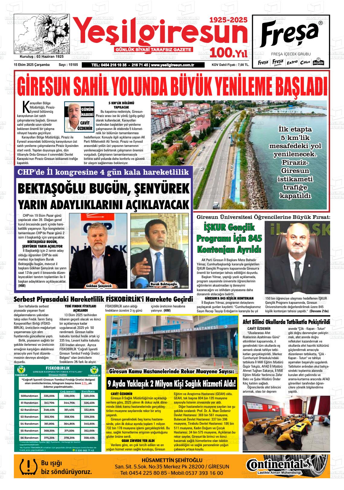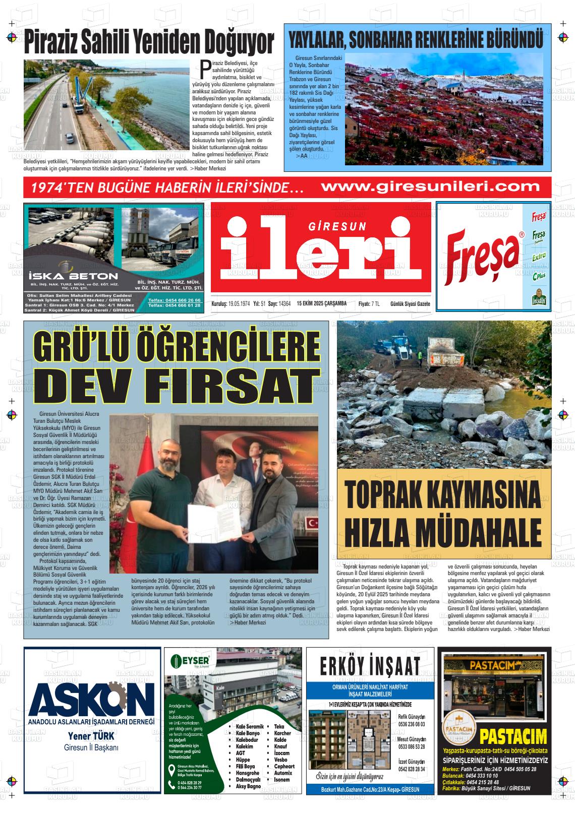 Gİresun Yerel Gazeteleri 01 Aralık 2025, Pazartesi Günü Manşeti