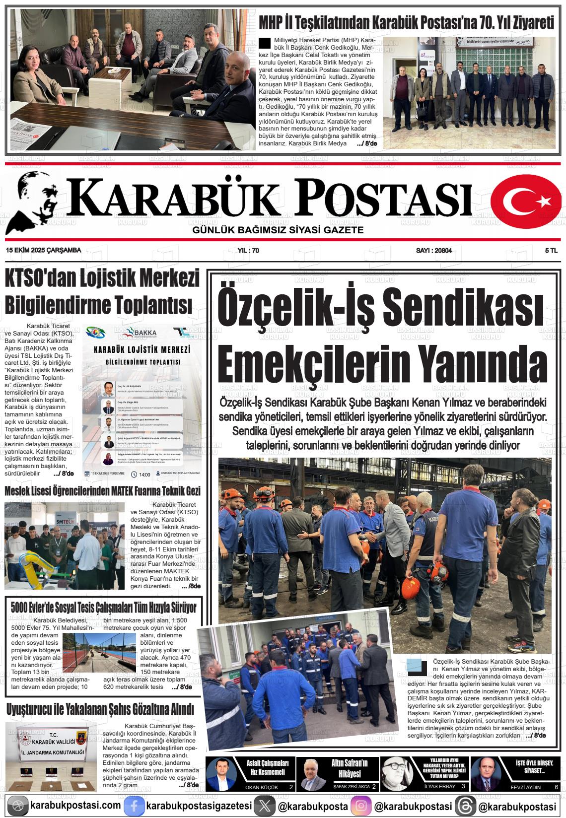 Karabük Yerel Gazeteleri 15 Ekim 2025, Çarşamba Günü Manşeti
