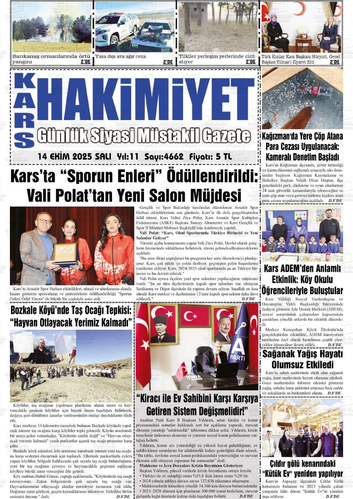 15 Ekim 2025, Çarşamba Günü Manşeti