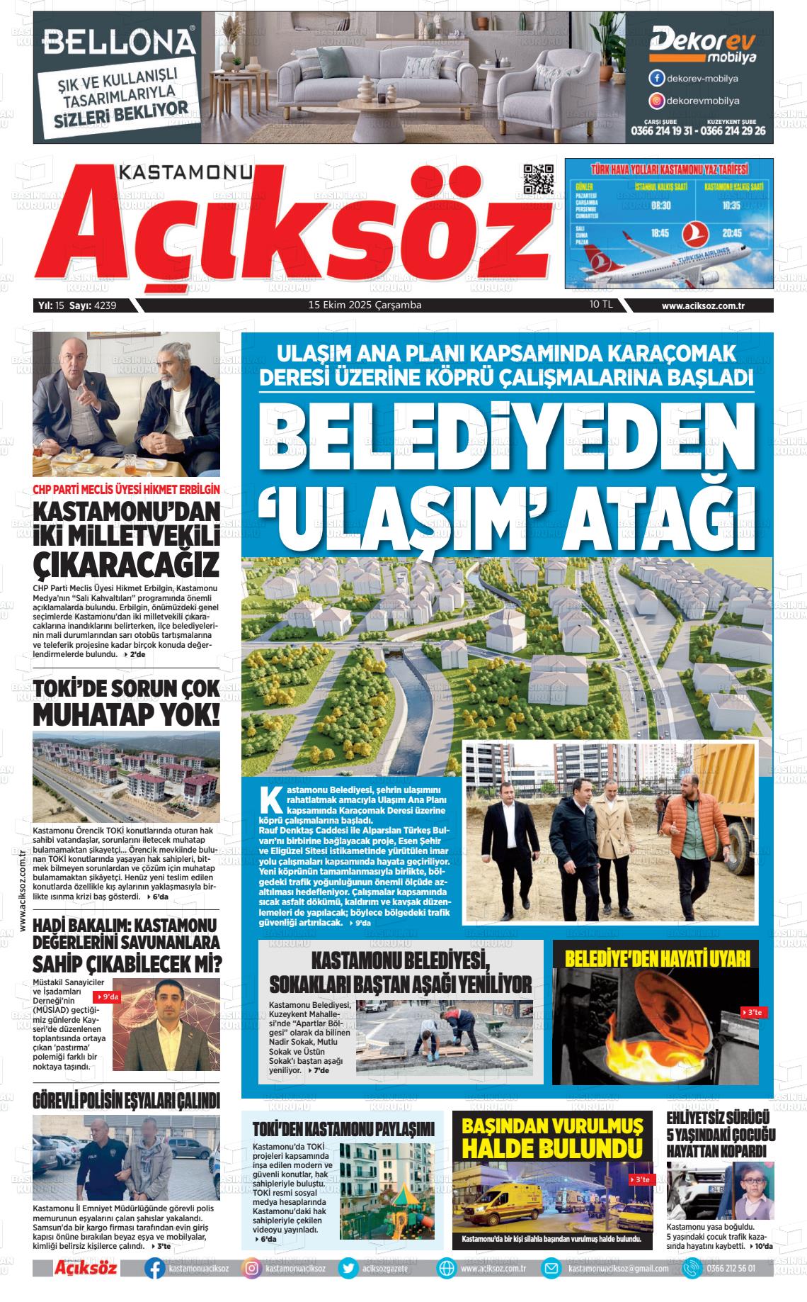 Kastamonu Yerel Gazeteleri 01 Aralık 2025, Pazartesi Günü Manşeti